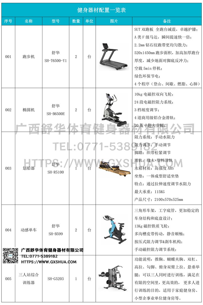 小飞鸟(1台)、史密斯机(1台)、多重可调节练习椅(1台)、腹肌训练器(1台)、6付哑铃套组(1套)、可调哑铃凳(1台)、可以实现对不同肌肉群的针对性训练,满足肌肉训练需求,全方位激活身体机能。