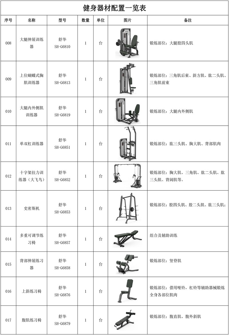 13.bsports官网史密斯机SH-G6853*1台-锻炼股四头肌、股二头肌、肱三头肌;史密斯机采用固定轨迹的杠铃设计,大大降低了训练过程中的安全风险,通过深蹲、卧推、肩推等经典动作,可以针对性地锻炼腿部力量、上肢力量、背部肌群、胸部塑形以及肩部稳定等,从而全面提升身体素质,满足不同的健身需求;